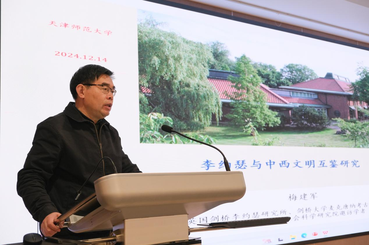 12月14日上午,公司“求是讲坛”第100场报告在京津冀协同创新中心B座小报告厅举行。剑桥李约瑟研究所所长、剑桥大学麦克唐纳考古研究所研究员、北京大学人文与社会科学研究院邀访学者梅建军研究员作题为《李约瑟与中西文明互鉴研究》的学术报告。公司党委副书记陈玳玮主持报告,公司科学技术史与文化遗产研究院、kai云体育官方app、欧洲文明研究院、古籍保护研究院、历史kai云体育官方app、国际教育交流公司、教育学部、心理学部、马克思主义公司等单位和内蒙古师范大学师生代表220余人参加。