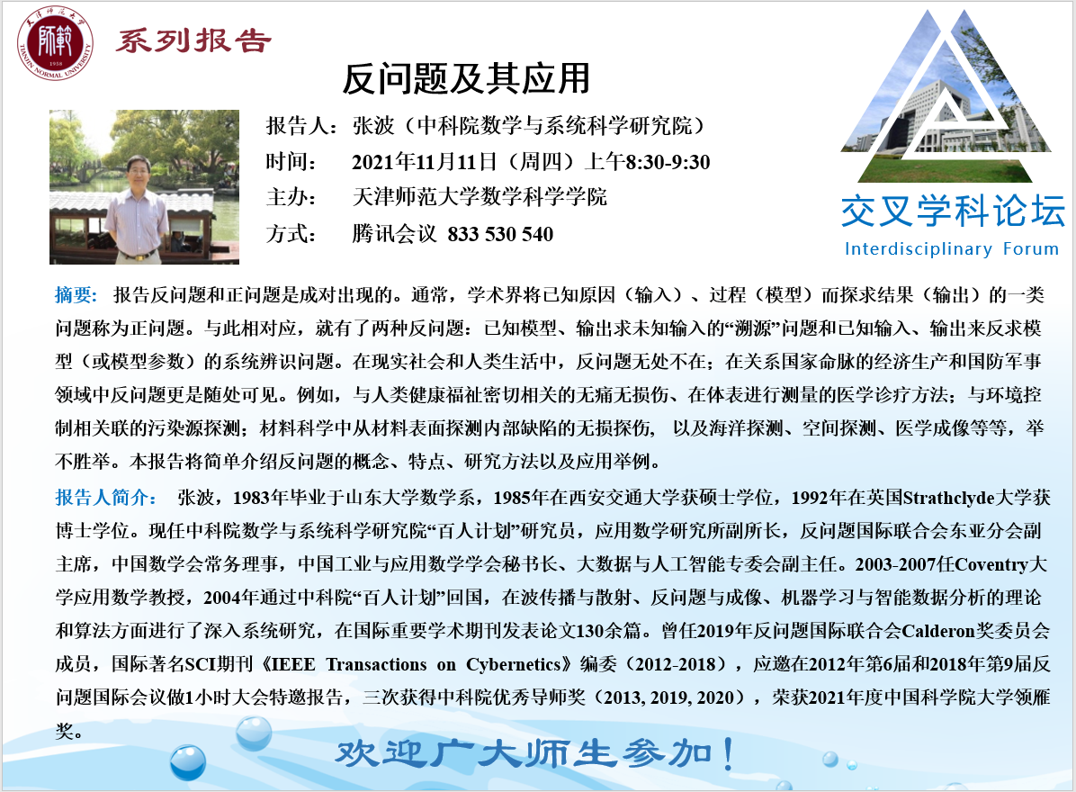 【预告】学术报告(2021-24)11月11日报告——反问题及其应用