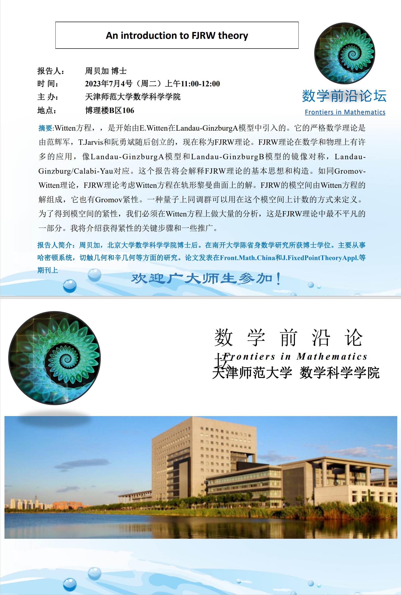 【预告】学术报告(2023-19)7月4日——An introduction to FJRW theory