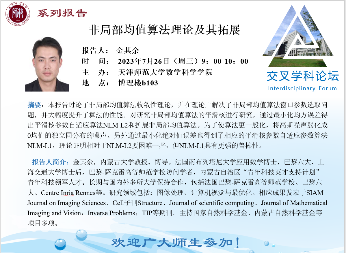 【预告】学术报告(2023-24)7月26日—非局部均值算法理论及其拓展