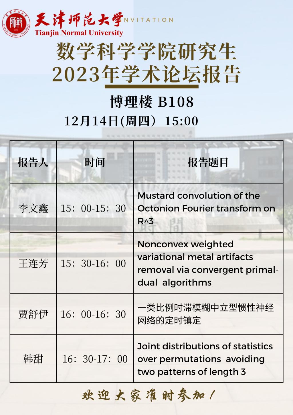 【预告】学术报告(2023-41)12月14日—kai云体育官方app研究生2023年学术论坛报告