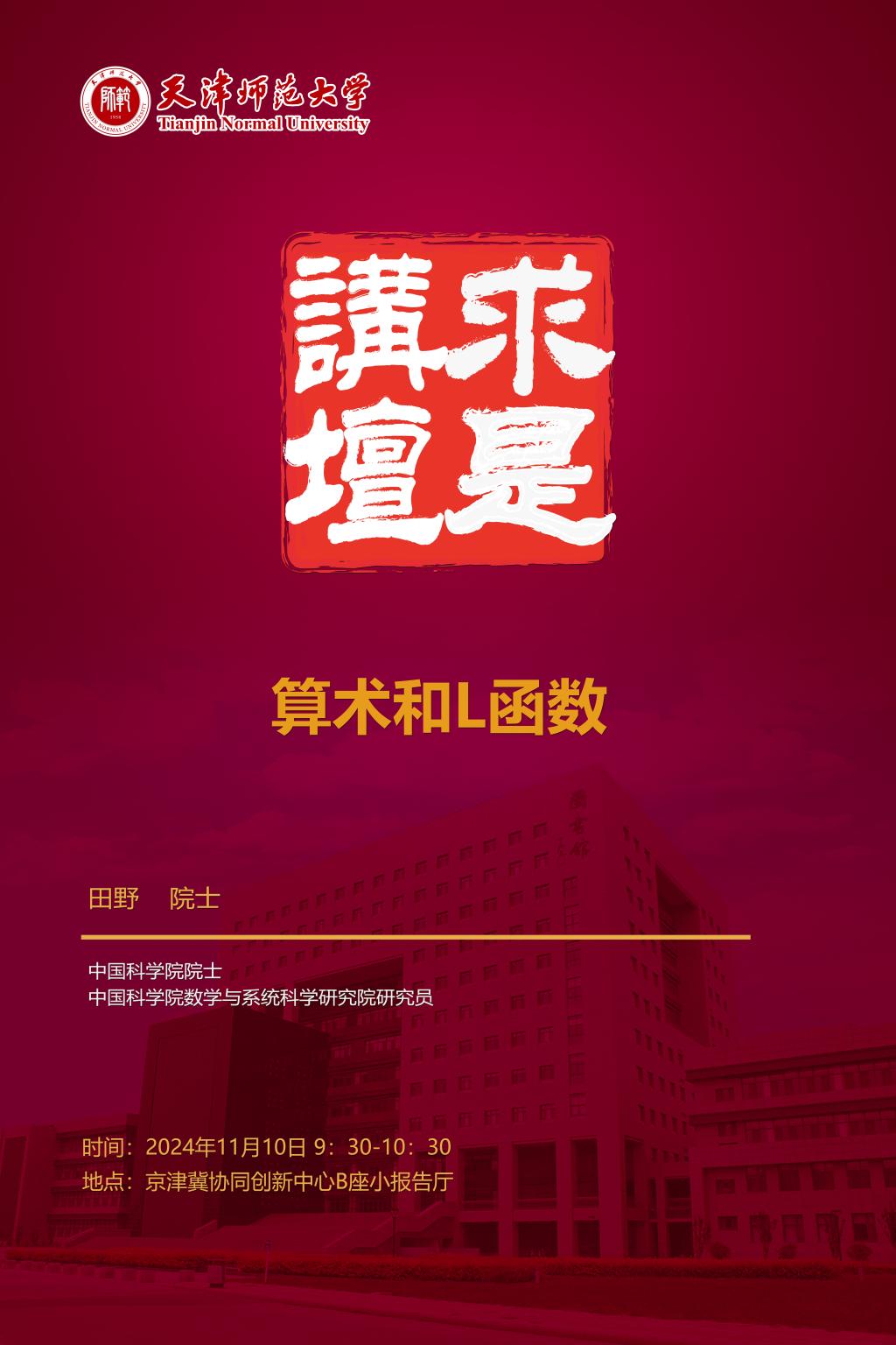 【预告】学术报告(2024-21)11月10日——求是论坛 算术和L函数