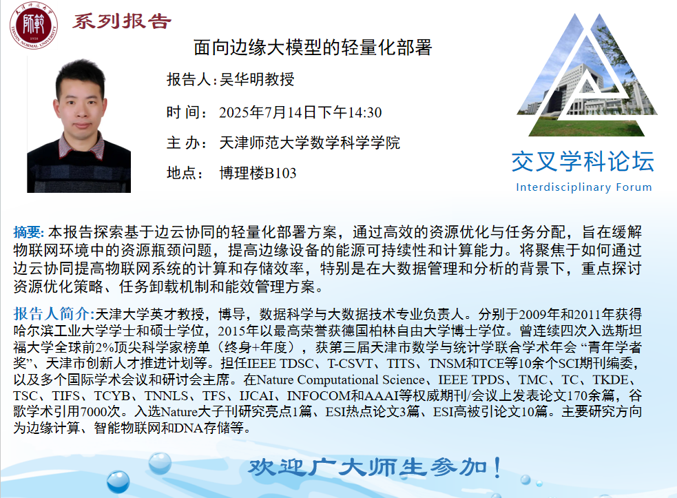 【预告】学术报告(2025-26)7月14日——面向边缘大模型的轻量化部署